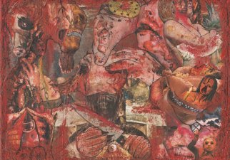 At only five and a half minutes, Cavatus and PKWST’s first collaboration is over pretty quickly—but I highly doubt that it will fail to make an impact on any listener. The horrifying depravity of these two artists’ aesthetic vision on Ruins of Bronzemaw should come as no surprise considering their recent collaborations and releases. Though both musicians’ bodies of work have a broad stylistic history, Cavatus made his first foray into gore on last year’s Dinosaur Maker, also on LLHV, and PKWST’s Roman numerals series touches on similarly dark, disturbing territory. This new release, though, is a different beast, and its unhinged, insane deconstruction of goregrind, industrial, and harsh noise makes for some of the most intense music either artist has produced. “I” begins things in a truly murderous, unceremonious manner, irreverently smashing together detuned guitar chugs, clashing rhythms, deafening blasts of chunky distortion, and disgusting gore vocals to produce a stumbling musical Frankenstein. True to form, the album is mastered too damn loudly, but anything else would just be insufficient. To listen to Ruins of Bronzemaw is to be pummeled into submission by said ‘musical Frankenstein’ until you’re nothing more than the bloody mess shown on the cover, a task happily accomplished through overwhelming volume, nightmarish atmosphere, and, of course, unapologetic grossness.