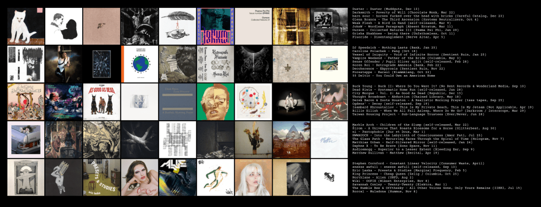 I discovered a veritable graveyard of amazing new black metal this year, but my clear favorite comes from a band I’ve been listening to for many years. I fell in love with USBM legends Yellow Eyes the first time I heard their dusky, dendrophilic masterpiece Sick With Bloom, but after not being very into their next record (2017’s Immersion Trench Reverie) I admittedly wasn’t hotly anticipating their 2019 release. But from the first moments of Rare Field Ceiling it’s immediately clear that you’re listening to something exceptional. Punchy drum onslaughts barrel from the darkness like woodland armies; angular, dissonant riffs curl and meld until they explode in bursts of warm beauty; nocturnal nature recordings and ritualistic samples sew the six tracks together to form an immersive, uninterrupted odyssey. The songwriting is succinct yet sprawling and organic, the cryptic and evocative lyrics are delivered with heart-wrenching passion, and it’s so well paced that by the time its 45 minutes are over you’ll wonder where all the time went. Original review