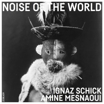 I’ve been a fan of Berlin-based improviser Ignaz Schick ever since I first heard Live • 33 • 45 • 78, his superb duo recording with fellow abstract turntable virtuoso Martin Tétreault. Schick is a fascinating contributor because its impossible not to try to visualize the vast array of motorized devices, objects, repurposed instruments, and turntable preparations of which he makes use during his performances, his crowded table setup emitting carefully constructed currents of switch-flips, whirs, and mechanical drones. Noise of the World documents more of an unusual pairing for Schick’s approach: that of Amine Mesnaoui, an African sound artist and traditional music performer who shares Schick’s love of subversive forms and Moroccan traditional music. Both of these predilections are present in ample quantities on the pair’s debut release, which filters Mesnaoui’s Gnawa sensibilities through an “untuned” Fender Rhodes and grand piano while Schick injects a wide range of textural and rhythmic elements, from struck organ pipes and Shruti box to agitated surfaces and tonearm abuse. Though the two musicians’ improvisations wander into various stylistic locales, from the relatively classic improvised approach on “Nat-Nat” (Mesnaoui’s chords remind me a bit of Tilbury) to the meditative polyrhythms and mysticism one associates with African music, they are always incredibly engaging.