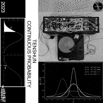 The history of “pure” turntablism—deploying the sounds of the device itself (motor hum, empty scratches, etc.) in a musical context—is a long and storied one, and is also a great example of a case in which innovation compounds upon innovation. By that I mean that even two-plus decades beyond the ostensible exhaustion of such an approach by legends such as Tétreault, Yoshihide, M (both Erik and Sachiko), Schick, and others, no one could claim that contemporary figureheads like Maria Chavez or Graham Dunning aren’t consistently breaking new ground to this day. Unlike many in the field both past and present, San Diego artist Tenshun (sometimes 10shun, real name Jonathan Calzo) has an extensive hip-hop background, much of his early career consisting of conventional DJ sets and beat tapes released in and around his Kilowattz crew. In recent years he’s become a prolific abstract improviser and experimenter, honing a basic but versatile performance setup of empty table with live modular processing; this assembly is what generated the dizzying assault of alien sound heard on the self-released Continuous Probability. All recorded live without overdubs on the same day, these sixteen tracks might be more like sketches if they weren’t so complex and fleshed-out, but each one is so thrillingly kinetic that any rough edges or lag points are near-impossible to pick out. The individual textures are all appealing in their own right, but Calzo keeps us too busy with the constant stereo shifts, cutups, and jagged layering for any to even come close to getting boring. A turntable is definitely the heart of this music, but then in that case the synth is the brain; this heavy, mincing real-time approach reminds me a bit of Eldar Tagi’s playing on Flock (with Patrick Shiroishi), and it’s something I hope more improvisers take cues from in the future. If your patch cables aren’t melting you’re doing something wrong!