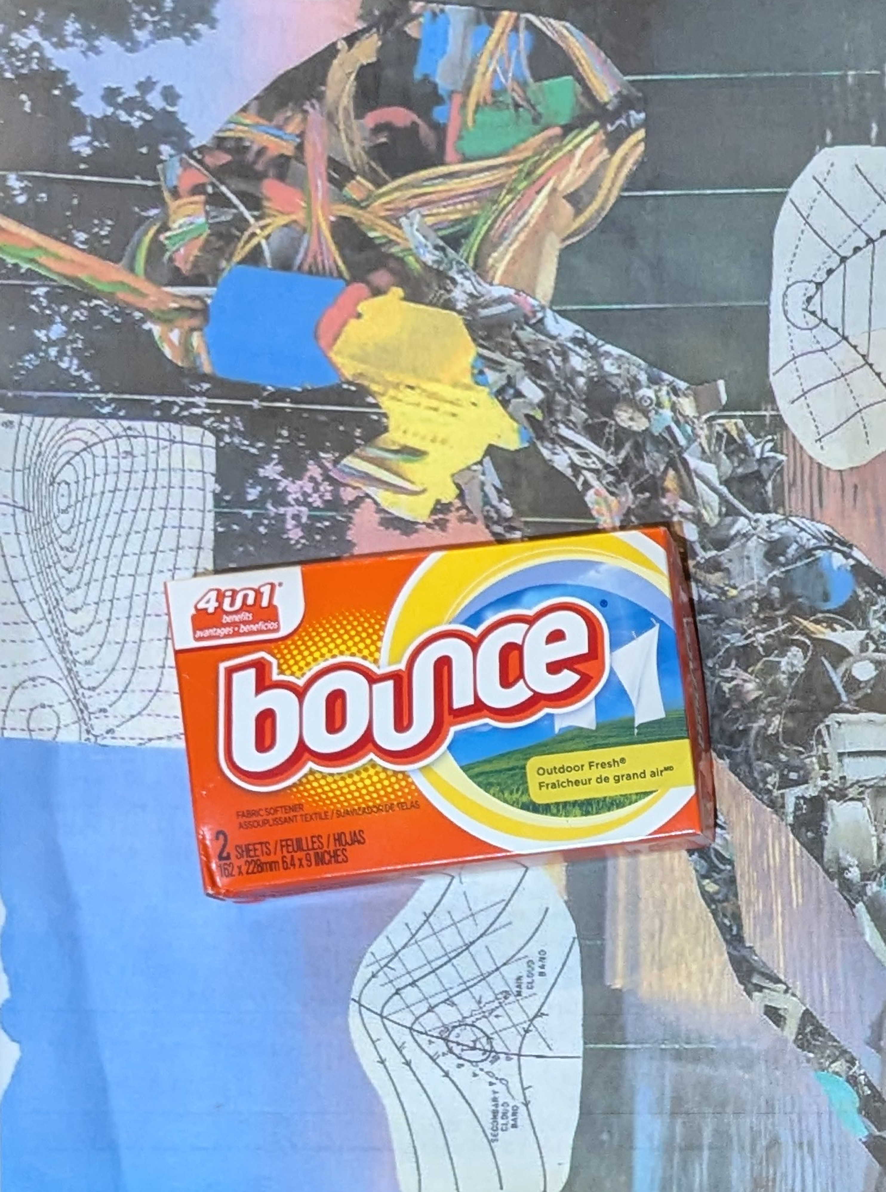 To open up a new Clearance release is to assail oneself with stimuli. Colors, textures, contrasts; images, narratives, mysteries; relevance, irrelevance, everything in between. Old hat, maybe, to those of us trained by gas station screens and FYPs… but it’s also different to be confronted by the physicality of the information, the evidence that the items and ideas were assembled by actual hands rather than the algorithm, the possibility of there being some puzzle to solve, some answer to know. This futile human hope that we can figure it all out is what Zac Davis’s project is all about—in his own words, “when rhetoric is all we are force-fed, in the absence of proper logic we create new grammars which sort of act as a map for the nonexistent logic, which can’t be illustrated.” The “logic” of Life Hack is more intimate than The Seeds That Were Silent and less apocalyptic than Information Warfare, summed up from the get-go by the juxtaposition of a bright orange box of fabric softener sheets on a washed-out inkjet collage insert. Reach inside the bag to find some title pages, a sheet of handwritten prose, and a comprehensive list of favorite Dead shows. What a spread! As easy to get lost in it all as in the music itself, which you have to crack open the Bounce box to get at. Davis deploys his usual arsenal of crisscrossing frequencies and tape feedback at full tilt: layers constantly phase in and out, transmissions scramble for a place to land, garbled propaganda fights to convince. Much like his live sets, the material feels more like jams than compositions. We can hear knobs being turned, patches being activated, and the dial of a handheld radio—always a welcome presence, and here harnessed to great effect—being tuned. The electric clouds are agile enough to bend around much more obtuse elements, like the Dead song in the final track, which actually ends up seeping into the soundscape both sonically and conceptually. The airtight ziplock and secondary cardboard protective shell is crucial for preserving the fidelity of the most fried sounds in existence, so ask yourself before you open this can of worms… Do I really want to know?