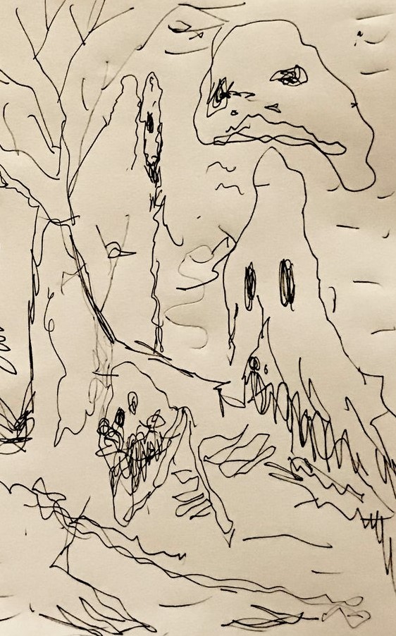 Kearney also contributed the abstract graphic score that formed the basis for these compositions (the cover art and other graphics, drawn by a different artist, were inspired by the original images), mostly consisting of sparse, gestural 2D geometry loosely structured with explicit verbal instructions—e.g., “look at the space from a low angle and feel the floor.” Live Eye TV’s Iggy Pot observes that “[i]t appears those words are directed to the performers, but they might be just as valid for the spectator, or in the case of Vital Attachments, the listener. While familiar rhythmic elements and sound tropes offer a leg to stand on or even dance on, the Katz Mulk experience continually subverts our vertical orientation, offering in its place the horizontal as a new location for the communal. Meanwhile, an echoing blizzard of vocals deconstructs the experience into philosophical quicksand demanding surrender to the supine as the unfamiliar becomes common ground (down).” These words apply to the whole album, but especially to closer “Host,” which is probably the best official track the project has released so far (and it even arguably has a chorus!). As Ellul-Knight commands, or perhaps implores, before descending into gratingly synthetic incoherence, “On the horizon, test the boundaries.”