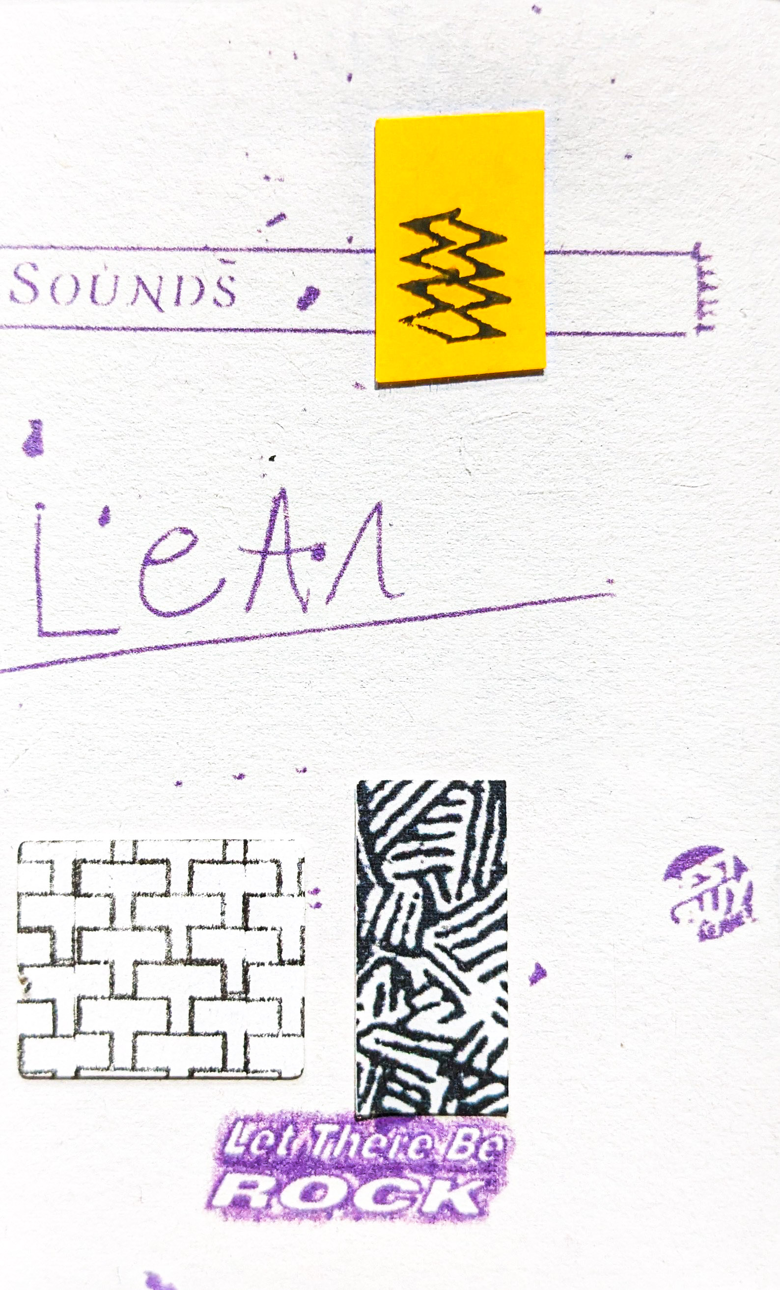 Improvised music is at its best when it just is, pure expression without pretenses. Necessarily self-funded, this humble approach has sustained itself via open-access internet platforms in recent decades and home-taping/trading long before that. The latter tradition is no relic lost to history, but a stubborn survivor even in a devoutly digital age, and we have it to thank for excellent art like this. When G-Tech operator Seamus Williams (TVE, A[e]yurvedic Tapes) and Mickey O’Hara (whose Bituminous Concrete Curb Detail on Ayurvedic I reviewed here last October) record and/or perform as Lean, they use nebulous junk assemblages that hum, hiss, crackle, and crumble with liquid ease, their considered interactions landing somewhere between Creode and GOD on the homegrown tabletop electronics spectrum. All of the Lean material collected on Sounds, and in fact all of the duo’s work, can be—and are, by Williams himself—described as simply “jams”: low-stakes, open-ended meetings of the minds that are as exploratory as they are expressive. On Sounds, a C60 of new material culled from the past six or so months, it’s pretty much impossible to tell who’s doing what… but that hardly matters with stuff like this. It opens with a bold bout of bass-heavy currents that retreat just as quickly as they arrive, leaving behind a simmer of cracked circuits and brooding drones. Radio plays a prominent role throughout, both as pure static and garbled half-tuned broadcast, always used gently and texturally (instead of disrupting the flow with full-on grabs). These aren’t just jams in terms of mindset, but also with regard to how they pan out: not impatient but not exactly patient either, eager to move and evolve with plenty of attention still paid to a general arc. The lengthy second track ends with a bang, making way for a B side that’s more restrained but no less fun.