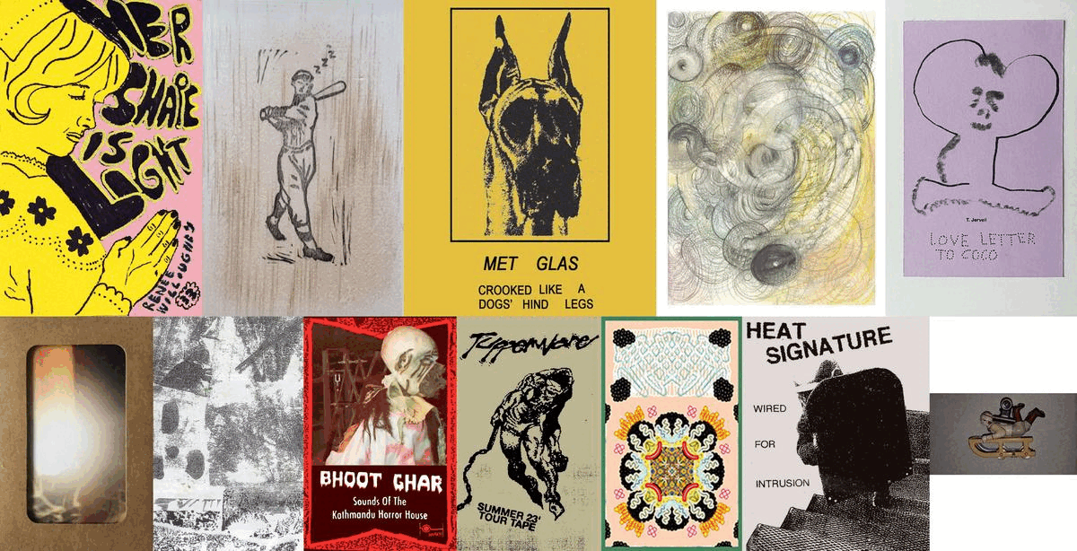 Heat Signature’s set at this year’s Ende Tymes was the best one I’ve seen them play, and one of the best I’ve seen anyone play. Trench Trapped, released both on CD and as a mud-caked, bamboo-staked special edition cassette, captures the ferocious energy of the duo’s live attack through the cracked, dirty scope of hand-stitched tape assemblage. This approach continues the loose-strung structural inclinations of their last tape, Wired for Intrusion, once again plundering scrap metal sources from Ahlzagailzehguh as well as gunfire by infamous Texas noise fixture Keith Brewer and a collaboration with Diaphragmatic.