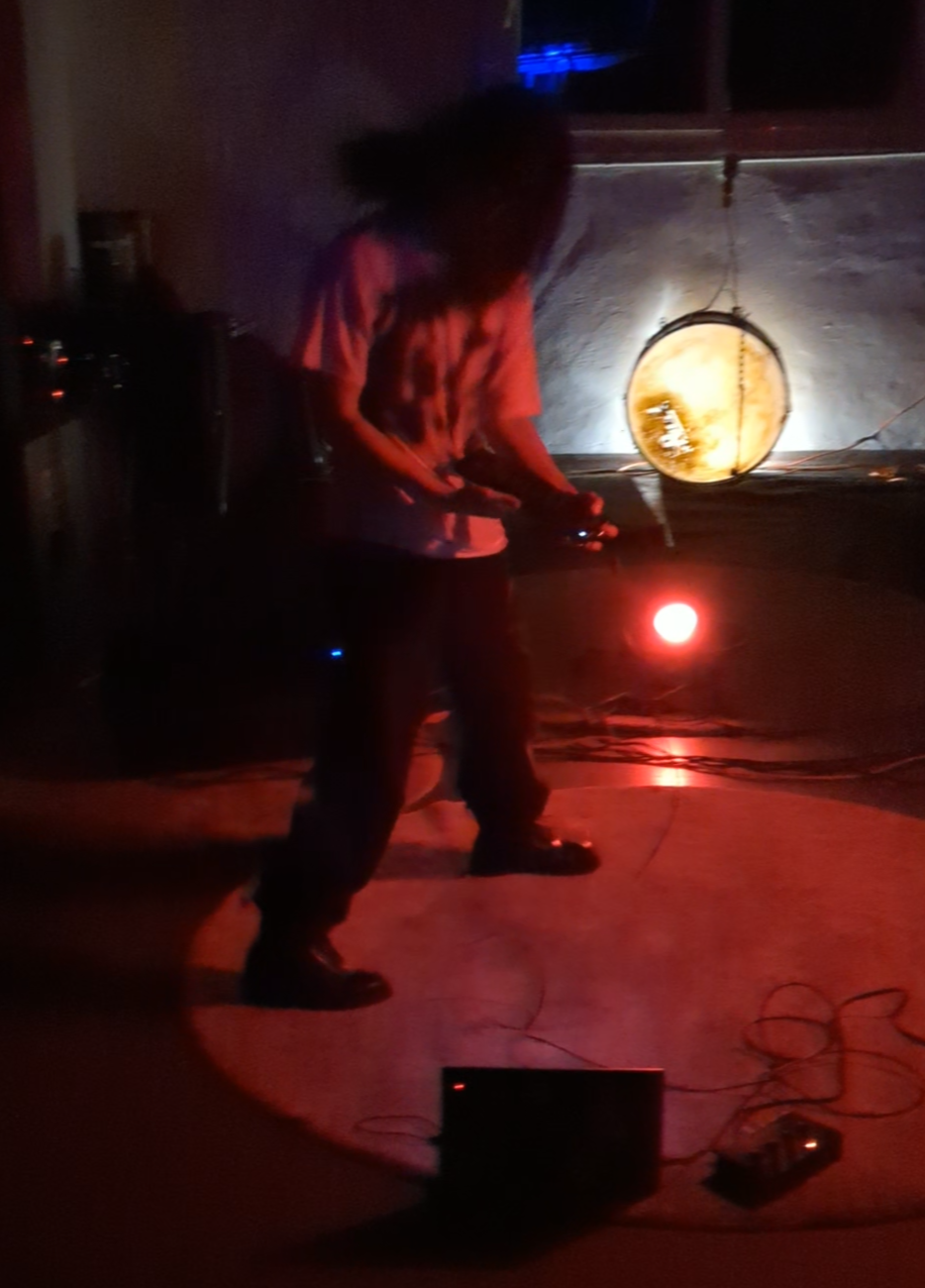BENTLEY ANDERSON brought a more patient, focused presence with some loop-heavy, effects-laden extended guitar drone. I’ve seen the established performer and Decontrol operator around at events before, but we’ve never had the chance to meet. I enjoyed the hypnotic layering of feedback and overtones, most of which was driven by various percussive interaction on the body and pickups. Comparisons to 90s Kiwi legends danced in my head, but Anderson’s approach is more active and immediate. The progression was careful and controlled, never fully boiling over yet always satisfying. Low-key but loud.