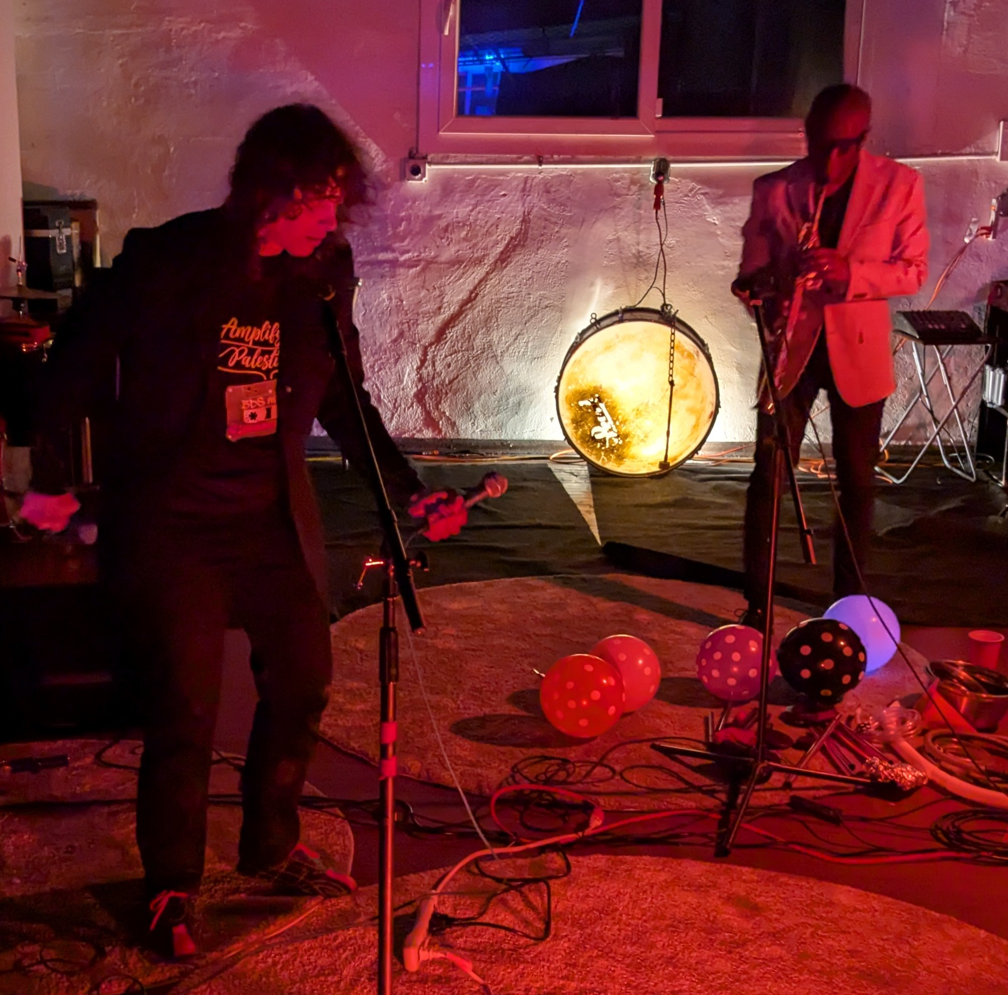 Yan was also always on the move, setting up his chair at various places on the opposite end of the street to vocalize and make hand gestures. It was a joy to amble around the haphazard network of miniature events. A highlight was seeing a small crowd crouched around something on the ground and wandering over to reveal an upside-down coffee cup vibrating on a motor—and then it was over, and we were on to the next wonder. The decentralization ensured that no two attendees had the same experience, even though everyone witnessed the same performance. Beyond the superficial similarities of Shots’ and Yan’s approaches, the unifying essence that also served as bedrock for this open-ended meeting is their shared intentionality. No matter how random and/or inscrutable an incident might appear, it was meant to be so. Such purposefulness produces a fascinating energy, an energy that joined disparate parts into a single web of sound, etc. I’ll be thinking about this one for a long time.