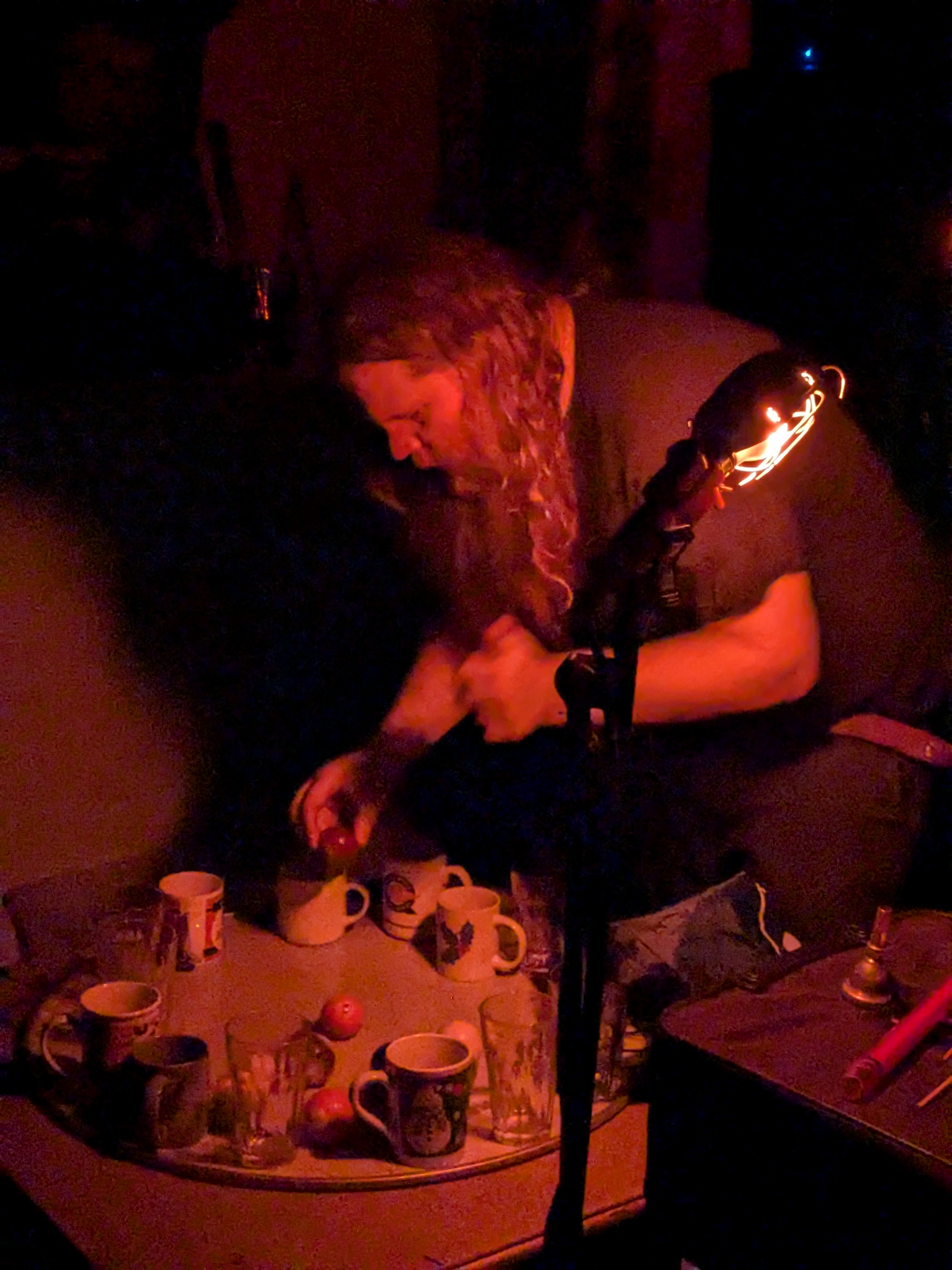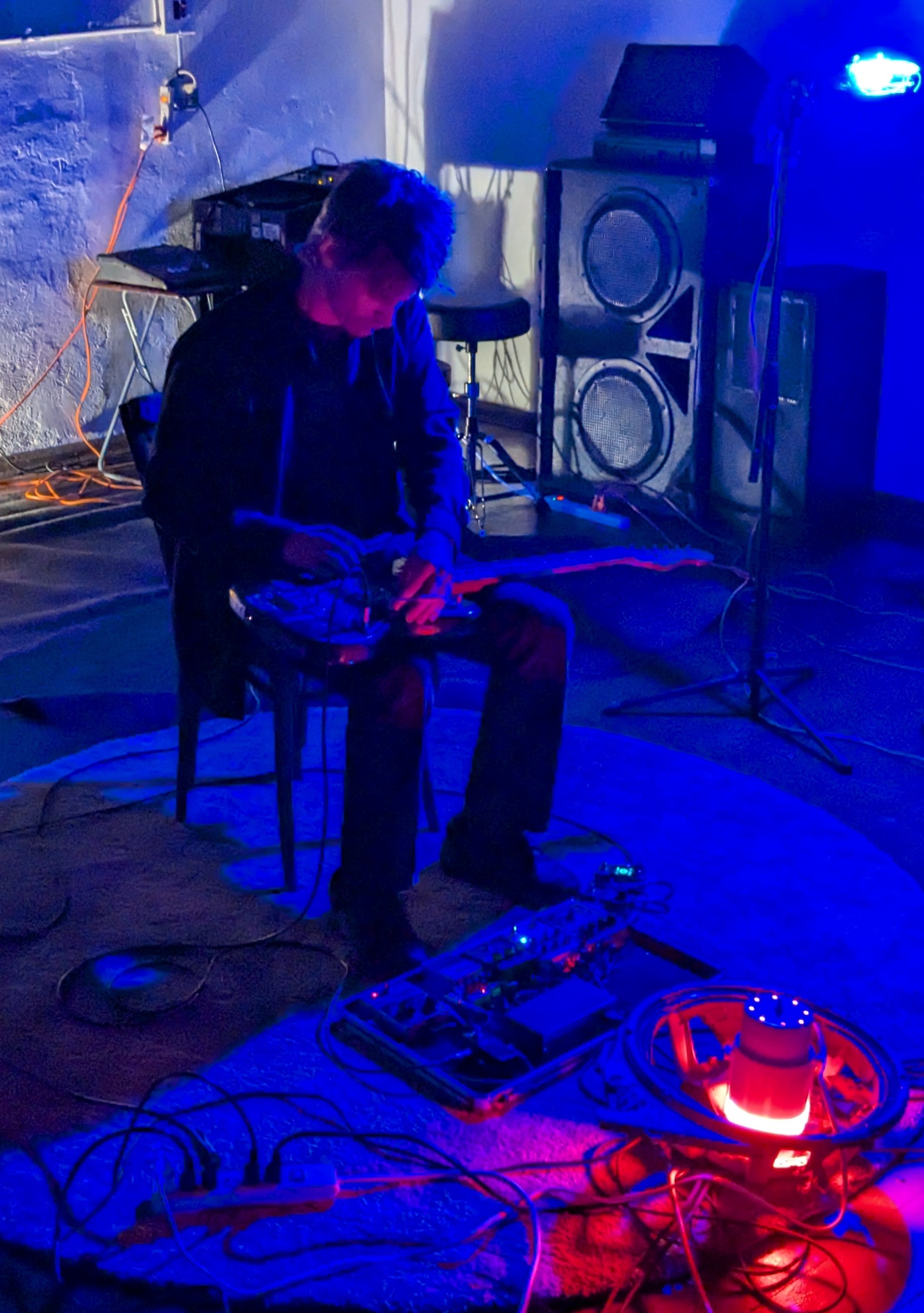 BENTLEY ANDERSON brought a more patient, focused presence with some loop-heavy, effects-laden extended guitar drone. I’ve seen the established performer and Decontrol operator around at events before, but we’ve never had the chance to meet. I enjoyed the hypnotic layering of feedback and overtones, most of which was driven by various percussive interaction on the body and pickups. Comparisons to 90s Kiwi legends danced in my head, but Anderson’s approach is more active and immediate. The progression was careful and controlled, never fully boiling over yet always satisfying. Low-key but loud.